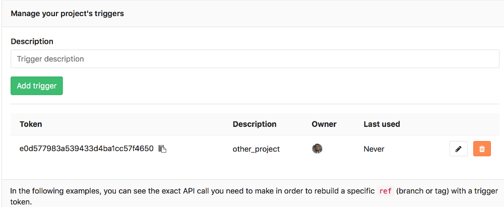 by using a Personal Access Token instead of a trigger token. Add a new trigger