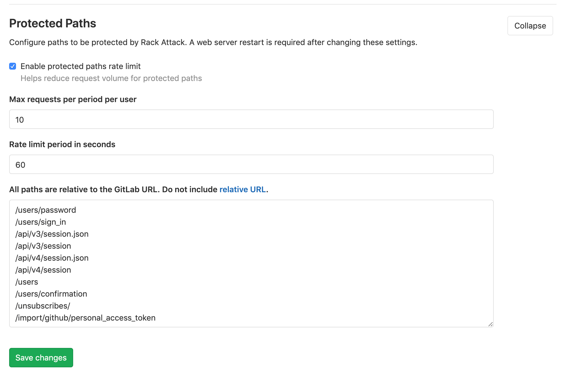 GitLab responds with HTTP status code 429 to POST requests at protected paths