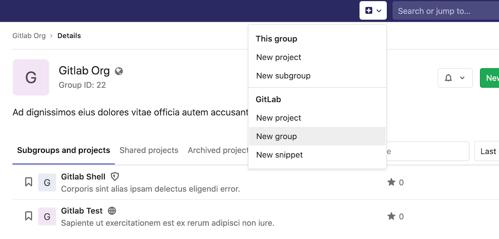 +button in the top navigation bar, or the New subgroup button on an existing group's page. -